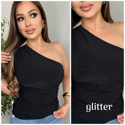 Shelly GLITTER One Shoulder Top - (BLACK)